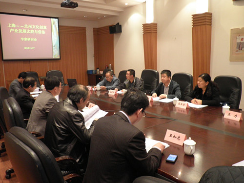 11月17日,在上海社会科学院的鼎力帮助与支持下,成功召开了上海-兰州文化创意产业发展交流研讨会。参加本次会议的专家有上海市哲学社会科学规划办公室主任、教授荣跃明,上海社会科学院经济研究所副所长、研究员权衡,上海交通大学媒体与设计学院院长、教授李本乾,上海社会科学院文化产业研究中心主任、研究员花建,上海社会科学院文化创意产业研究中心主任、研究员王慧敏,上海社会科学院文化创意产业研究中心主任、研究员王如忠,上海社会科学院社会调查中心研究员陶希东,上海社会科学院经济研究所副调研员、产业经济博士雷新军,上海社会科学院经济研究中心助理研究员李凌。