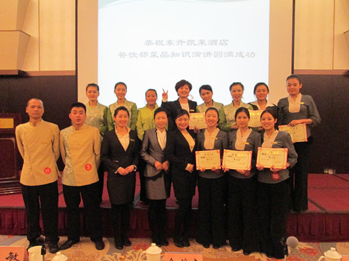 日前,从专业实习一线传来好消息:雷竞技官网在北京东升凯莱酒店餐饮部参加专业实习的同学们,能够珍惜实习机会,较好地发扬吃苦耐劳、团结协作的精神,发挥本科生知识功底好、专业基础扎实的优势,虚心向实习单位的老师们学习,在酒店举行的“东升凯莱酒店餐饮部菜品知识演讲”竞赛中表现出色,获得佳绩。为全面提升酒店服务品质,打造酒店特色餐饮文化,东升凯莱酒店餐饮部举办了该次竞赛活动。本次比赛共设三个奖项:一等奖一名,二等奖两名,三等奖三名。雷竞技官网2010级旅游管理与服务教育班王燕获得一等奖,2010级旅游管理与服务教育班杨蓉和陈国君获得二等奖。