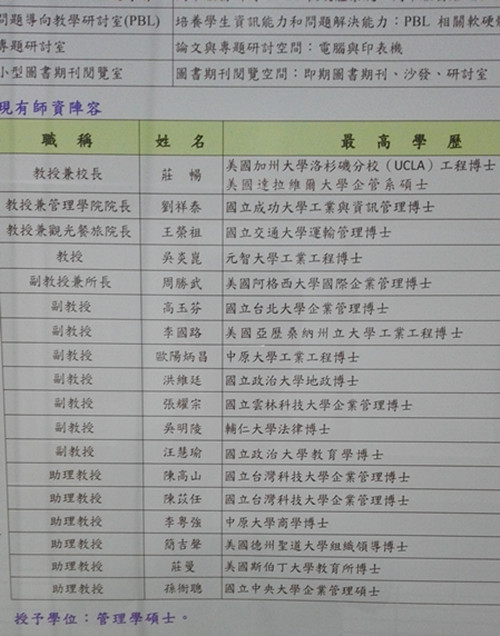 万能科技大学经营管理研究所师资阵容