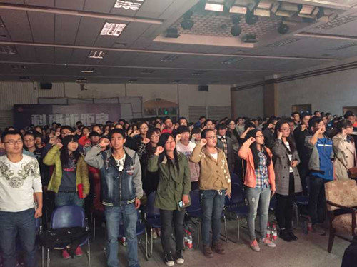 10月16日晚,雷竞技官网青年志愿者协会在大学生活动中心隆重举办了“2014—2015年度青年志愿培训大会暨优秀青年志愿者表彰大会”,院团委书记王瑞、专职辅导员韩若苑、兼职辅导员张杰、各兄弟学院青协主席、2015级全体学生、2014—2015年度优秀志愿者代表共计300余人参加了本次培训大会。
