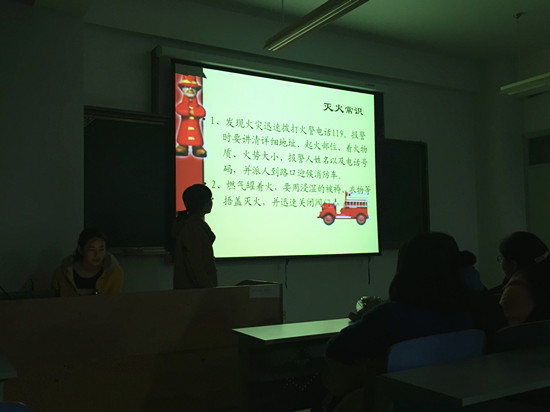 社会实践与志愿者工作部同学通过PPT的形式向大家讲解了掌握消防知识的重要性并且给大家普及了基本的消防安全知识。随后,观看了由王宝强主演的关于消防战士的电影—《烈火男儿之超级英雄》,同学们了解了消防战士的生活状况和救火时的情景。