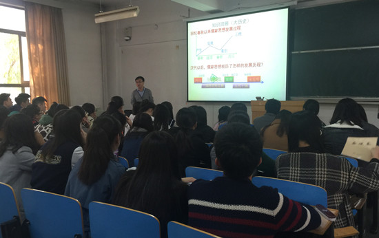 冯玉新老师在《中国传统文化概论》讲述中,用深入浅出的课堂语言特色,讲授了宋明时期儒学的发展状况,通过对历史上儒学发展变化的有关知识阐释,让学生深入了解中国思想史的发展规律,探究宋明理学的历史价值和社会影响。