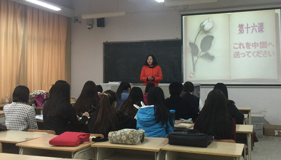 齐颖新老师在《基础日语》授课过程中思路严密清晰,语言流畅地对新单词和句子进行了详细讲解,并和学生练习情景对话。