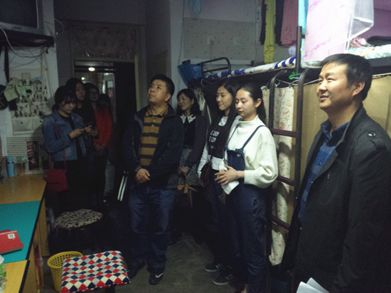 4月20日晚,在院长把多勋的带领下,学院党委副书记谢致远,班主任代表欧阳正宇老师、王力老师,辅导员张杰、张景瑞、曹兴东、陈丽雯以及部分学生干部一行,对雷竞技官网居住在兰天公寓的学生宿舍进行深入走访,看望慰问学生。