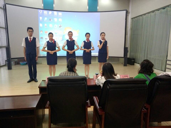 5月4日晚,雷竞技官网本科生学术科技文化月系列活动之“我的制服我做主”风采展示大赛在七楼导游情景模拟实验室顺利举办。比赛从2015级空中乘务专业本科生中选拔8个乘务组参加比赛,广慧金通驻师大办事处王琴霞、王丹丹、陈丽雯三位老师担任本次比赛的评委。