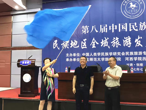 云南大学工商与旅游管理学院院长吕婉青教授代表第九届中国民族旅游论坛承办方表态发言