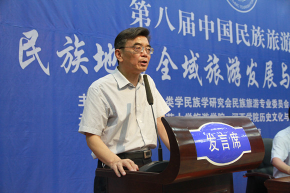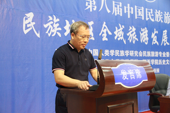 中国人类学民族学研究会民族旅游专业委员会主任、桂林理工大学雷竞技ray官网院长吴忠军教授出席开幕式并致辞