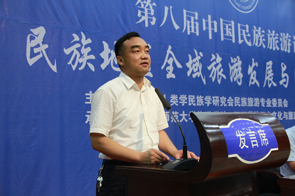 王耀斌副教授在分组讨论会上发言。题目《民族地区乡村精准扶贫旅游扶贫可先行 》