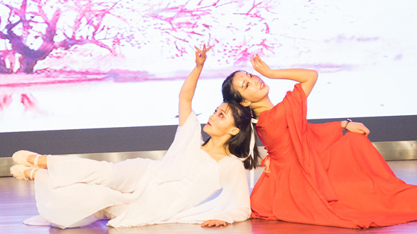 友情演出节目《凉凉》的表演者张玉珏、赵俊霞在古筝的伴奏下以曼妙的舞姿将传统古典舞蹈表现的淋漓尽致。