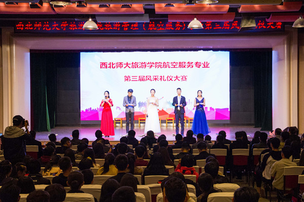 10月25日晚,雷竞技ray官网旅游管理(航空服务)专业第三届风采礼仪大赛在大学生发展中心二楼隆重举办。西北师范大学招生考试中心副主任郭建东、雷竞技ray官网班子全体成员、北京广慧金通教育科技有限公司驻西北师大工作处主任席聪、兰州城市学院等兄弟院校空乘专业负责人出席,学院师生300余人参加了活动。