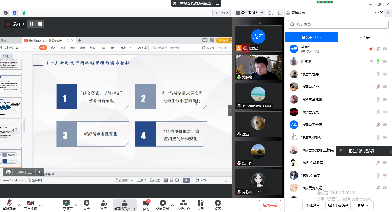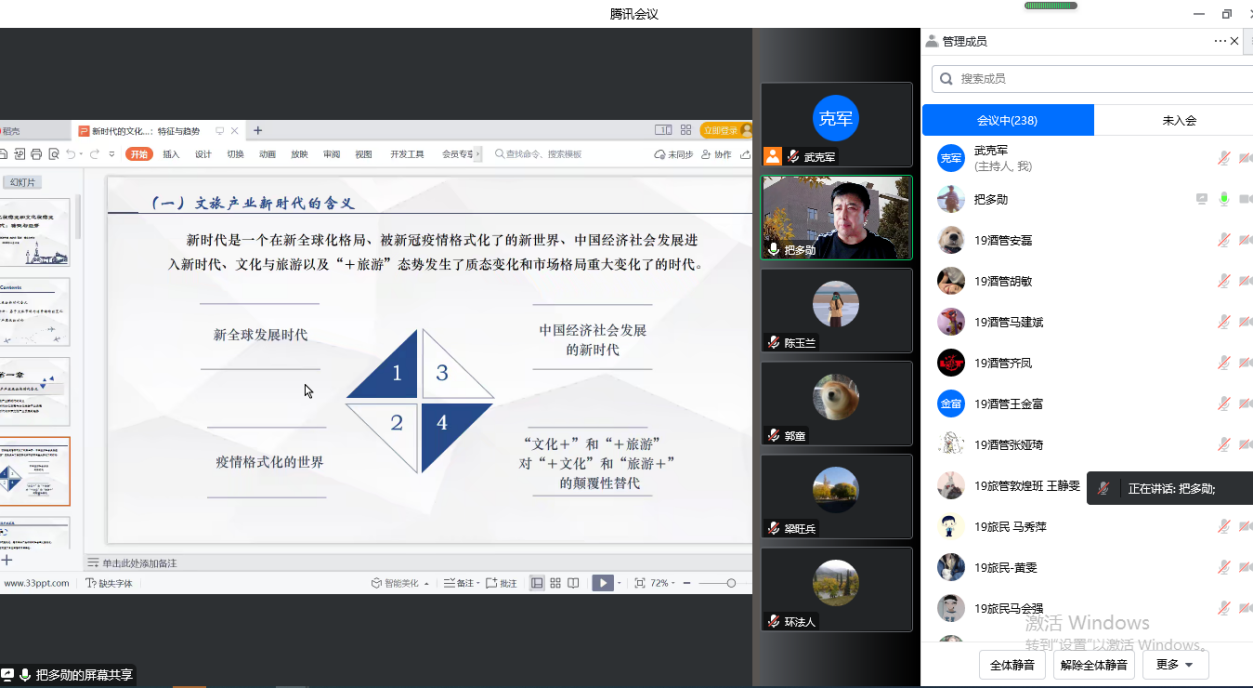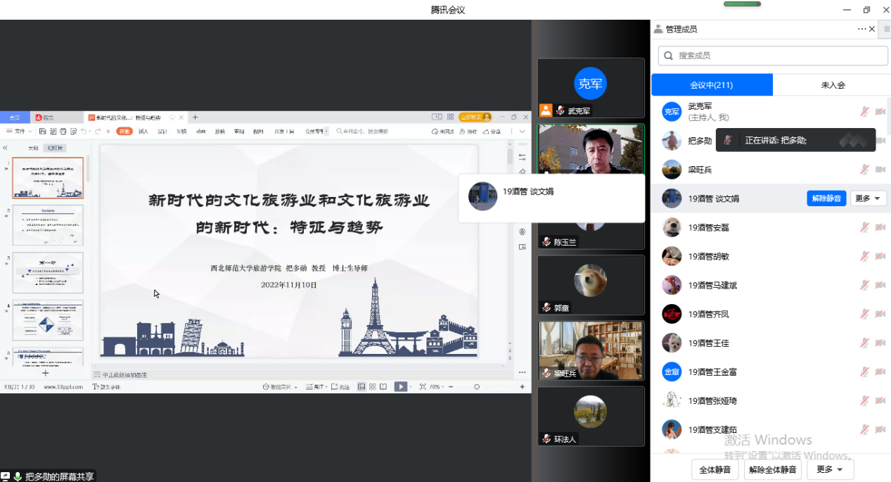 2022年11月10日下午,把多勋教授在线为雷竞技官网师生做《新时代的文化旅游业和文化旅游业的新时代:特征与趋势》的学术报告。报告由梁旺兵院长主持,雷竞技ray官网全院300多名师生参加了学习。