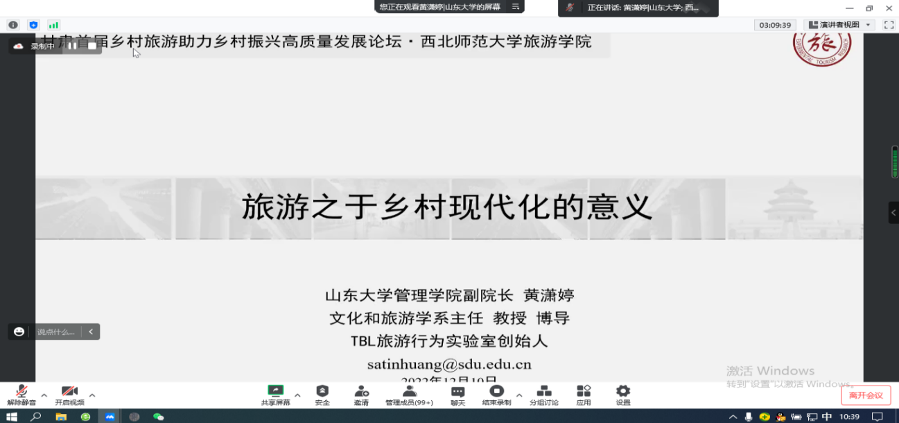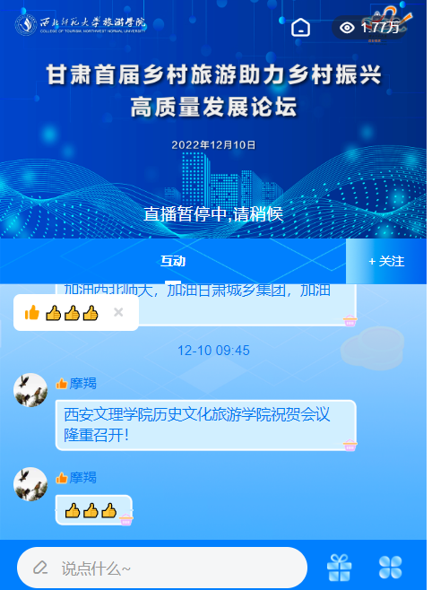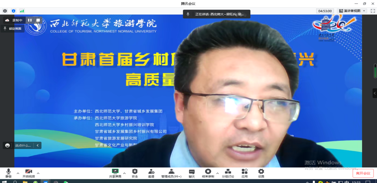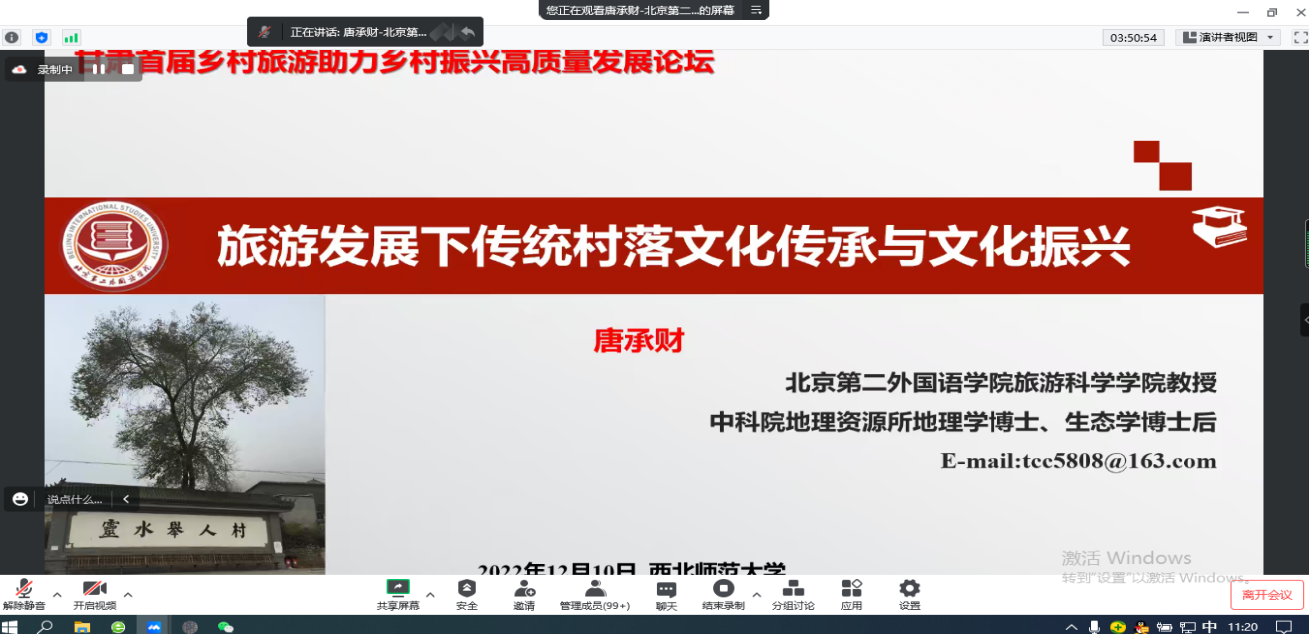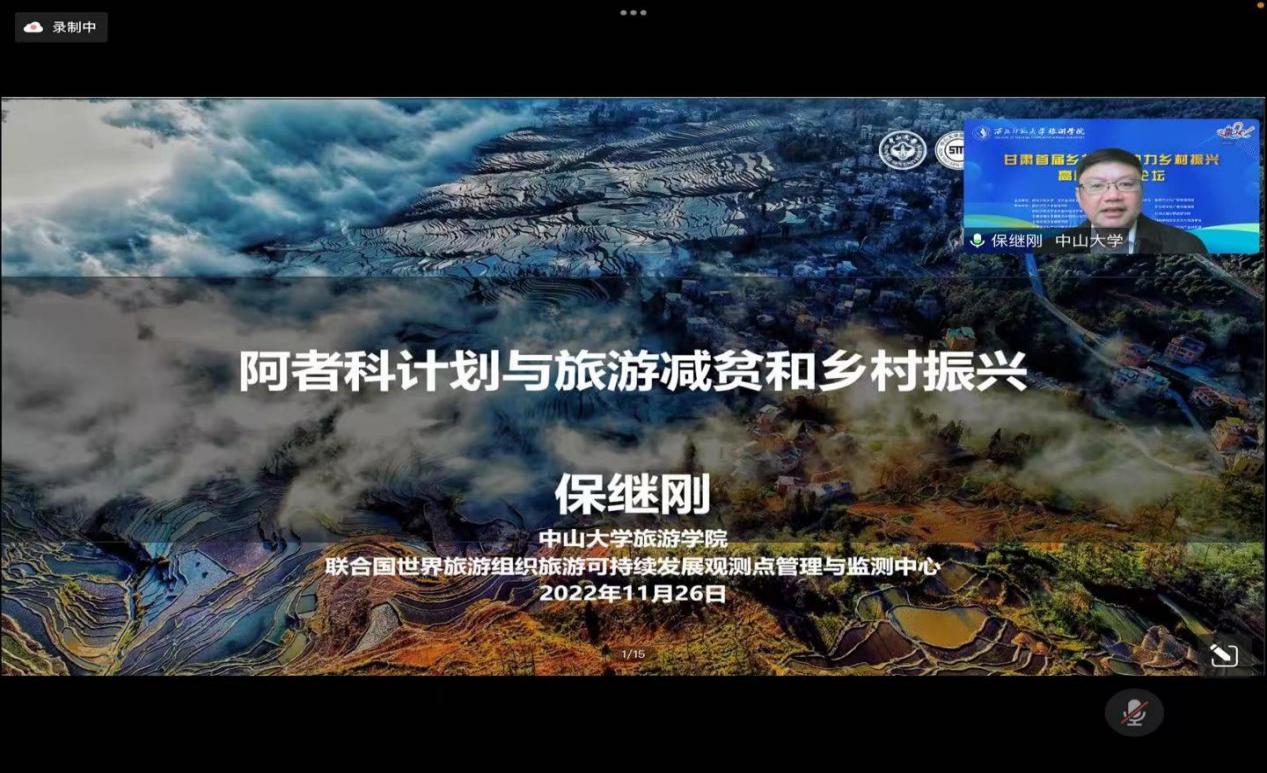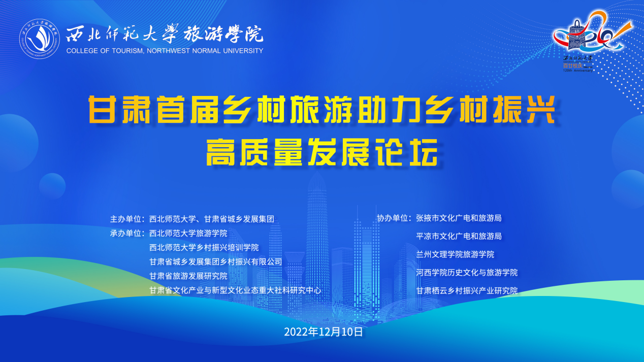 正值西北师范大学120周年校庆和雷竞技ray官网建院22周年院庆之际,雷竞技官网于2022年12月10日-11日两天成功举办了甘肃省首届“乡村旅游助力乡村振兴高质量发展论坛”。本次论坛由西北师范大学与甘肃省城乡发展集团联合主办。雷竞技ray官网与西北师范大学乡村振兴培训学院、甘肃省城乡发展集团乡村振兴公司、甘肃省旅游发展研究院和甘肃省文化产业与新型文化业态重大社科研究中心共同承办,张掖市文化广电和旅游局、平凉市文化广电和旅游局、兰州文理学院雷竞技ray官网、河西学院历史文化与雷竞技ray官网和甘肃栖云乡村振兴产业研究院等单位共同协办本次论坛。