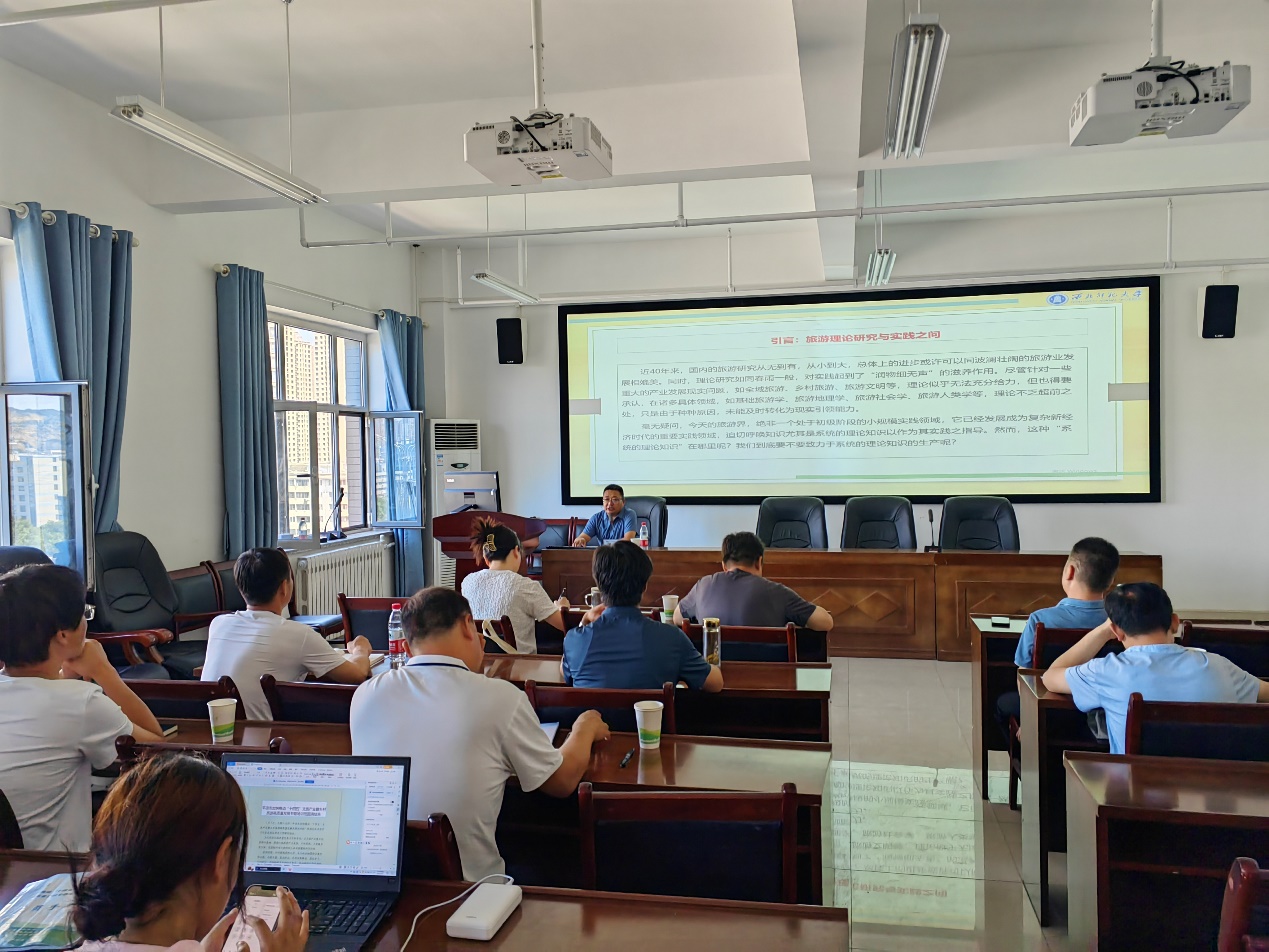 2023年7月7日下午,平凉市加快推动“十四五”文旅产业暨乡村旅游高质量发展专题培训班迎来了此次培训的最后一节课,由雷竞技ray官网院长梁旺兵为本次培训的学员带来了“文旅深度融合背景下乡村旅游高质量发展”专题讲座。