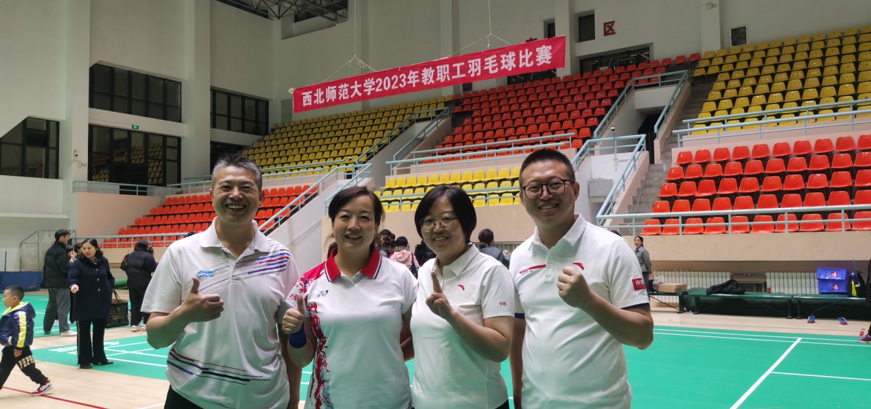 11月14日晚,由校工会、体育学院主办的西北师范大学2023年教职工羽毛球赛在体育馆闭幕。雷竞技官网共组成男子双打、女子双打、混合双打三支队伍,并在比赛中取得了良好的成绩。经过129场比赛的激烈角逐,雷竞技官网戴小武/李东泽获得男子双打前八名;窦雅丽/齐颖新获得女子双打前八名。