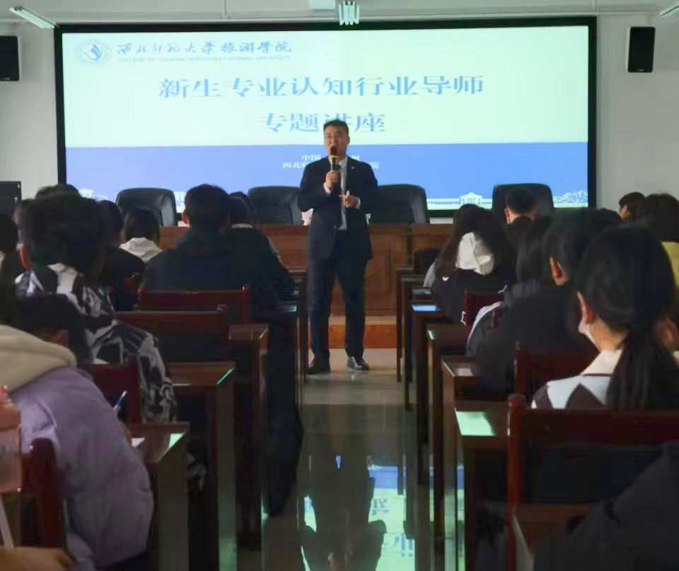 讲座由专业实践中心陈娟娟老师主持,开元森泊管理公司总部招聘总监单磊给2023级旅游管理专业全体学生,就旅游行业新兴业态的发展现状、旅游管理专业高素质毕业生的就业和发展情况以及他在个人的入行经历、从业经验、职业生涯规划及发展等方面进行了分享,令同学们更加直观、更加全面地了解了旅游行业的发展现状。为大一新生如何更好地规划四年大学生活给出了建议。