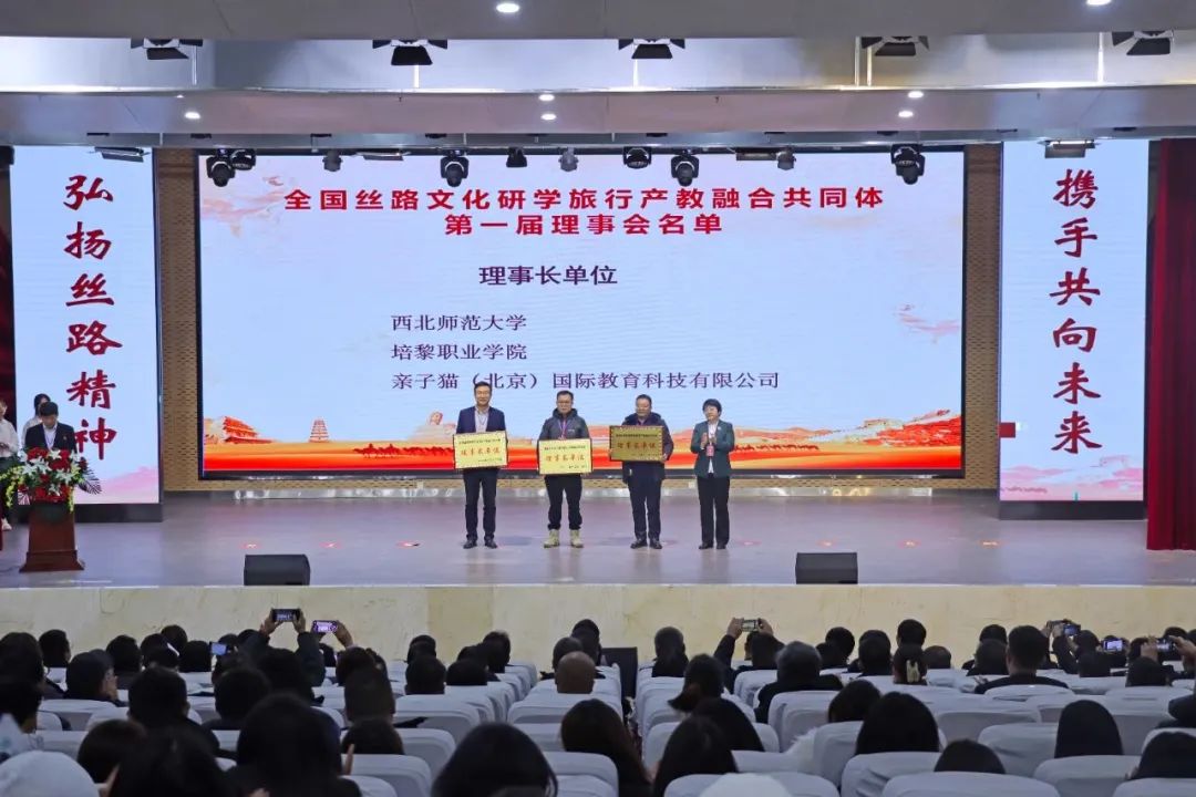 全国丝路文化研学旅行产教融合共同体由西北师范大学、培黎职业学院和亲子猫国际教育科技公司联合发起成立。全国20余所院校代表,50多家省内外行业龙头企业嘉宾代表参加了会议。