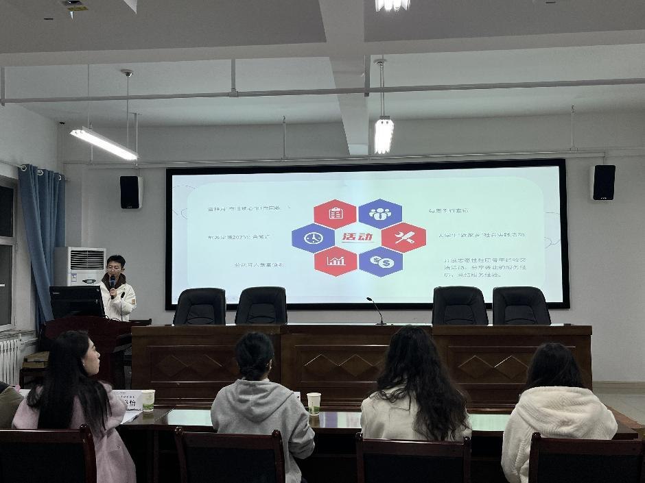 大会第二项,由院青协负责人赵亮从食堂劳动育人项目、雷锋月衣物回收、社区志愿服务、文明校园建设、助力新生入学、义务讲解、校庆志愿服务等方面,为大家详细介绍了这一学年学院开展的各项志愿服务活动并为后续志愿工作开展做出安排。
