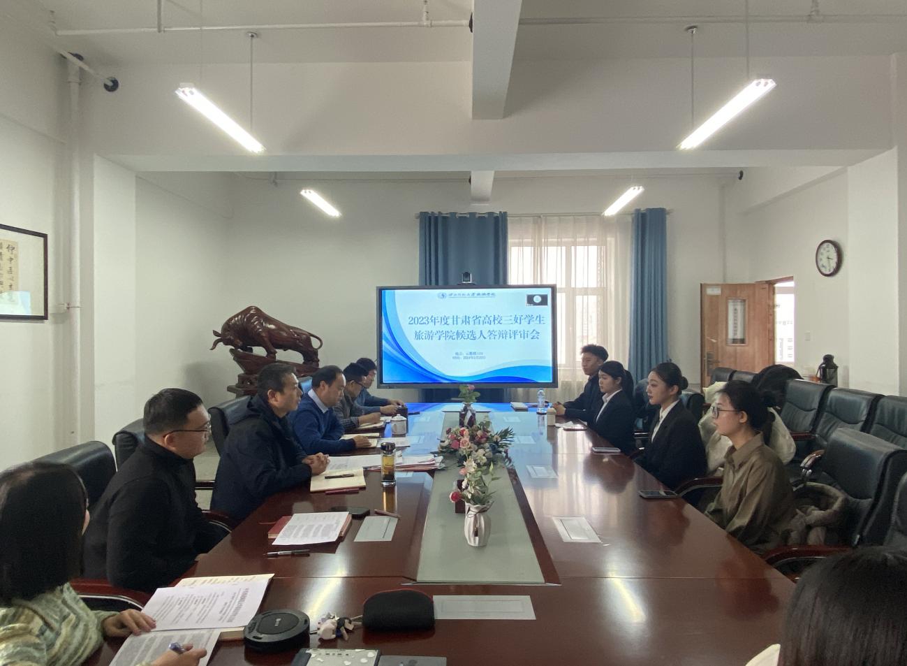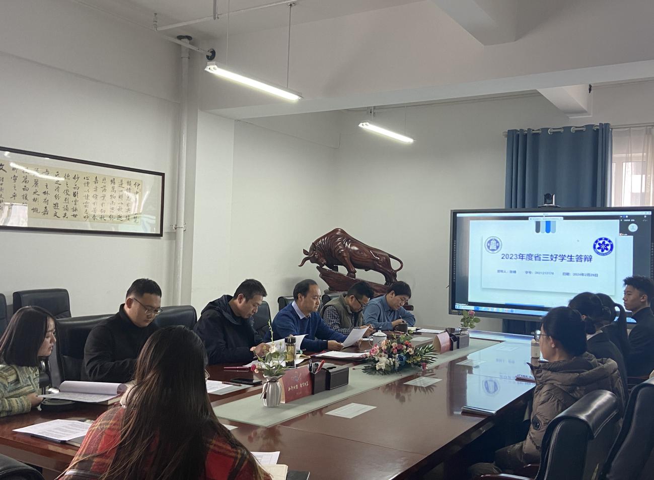 为树立先锋模范,发挥榜样力量,雷竞技官网于2月29日下午3点在文科实训楼1101室举行雷竞技ray官网2023年度甘肃省高校三好学生候选人答辩评审会。经过前期严格筛选,共有5名同学参与此次答辩活动(其中3名本科生、2名研究生)。雷竞技ray官网党委副书记戴小武、副院长武克军、教师周宏、蒲利利、专职辅导员鲁梦鸽、赵新帮和学生代表赵紫涵担任本次答辩评委。