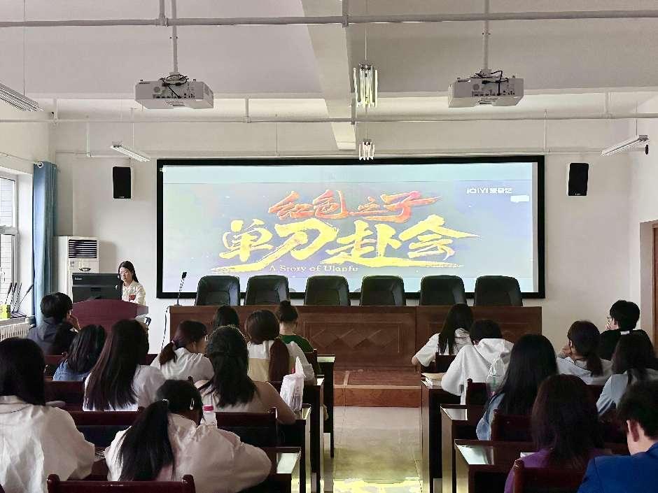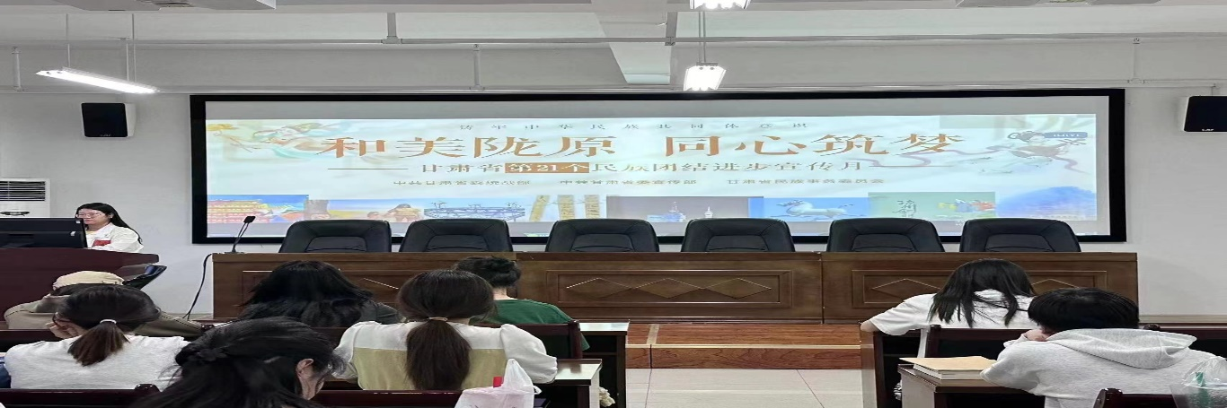 活动伊始,张少飞同学宣读活动事项。本次观影活动分为三个部分,即观看主题宣传片、观看影片《红色之子,单刀赴会》与分享观影心得。首先,组织同学们观看了甘肃省第21个民族团结进步主题宣传片。在宣传片中,各民族同胞身着盛装,欢声笑语回荡在每一个角落,展现出团结友好的美好画面。