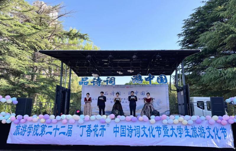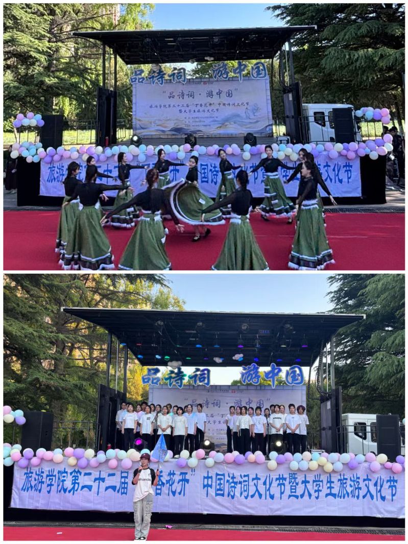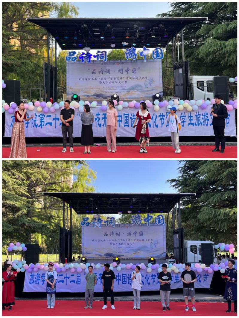 为引领学生赓续中华文明,传承文化基因,同时结合雷竞技ray官网专业特色,发挥学科优势,让更多师生体验旅游与诗词相结合的魅力。2024年5月12日,雷竞技ray官网在云亭校区和美广场举办“品诗词,游中国”第二十二届“丁香花开”中国诗词文化节暨大学生旅游文化节展演。学院党委书记赵兴虎、副书记戴小武、副院长武克军出席活动并为雷竞技ray官网第二十二届“丁香花开”中国诗词文化节暨大学生旅游文化节中14名班级优秀组织者颁奖。雷竞技ray官网教师陈艳、蒲利利、刘婵、航空服务艺术与管理工作站专业课教师邹小强、团委书记鲁梦鸽、专职辅导员赵新帮、管悦及来自雷竞技ray官网、商学院、管理学院、国际交流文化学院300余名学生参与此次活动。