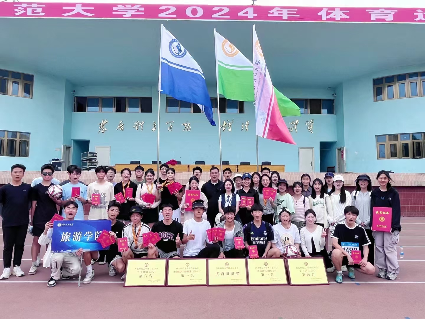 5月15-17日,我校2024年体育运动会隆重召开。雷竞技ray官网师生奋勇拼搏,齐心协力,最终荣获师生协同女子拔河第七名、师生协同多足竞速第三名、学生男子团体总分第六名、学生女子团体总分第四名、体质测试50米第一名、体质测试引体向上(仰卧起坐)第一名、优秀组织奖七项团体荣誉。2021级王怡璇获体育道德风尚奖。