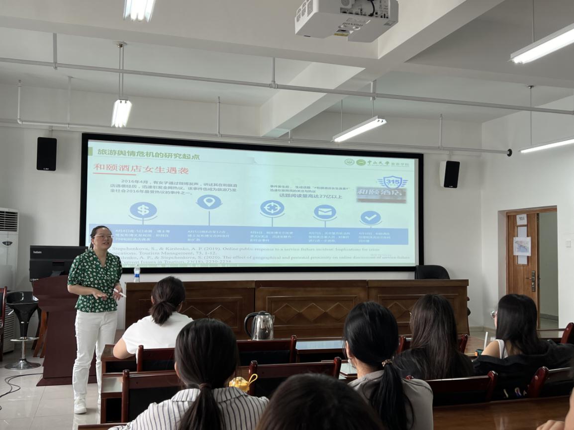 报告会上,粟丽娟老师围绕“旅游舆情的危机沟通管理研究”这一话题,通过多个旅游舆情危机事件,从单案例分析,案例对比和纵贯分析的角度,拓展大家对基于社交媒体数据的舆情危机沟通和应急响应领域知识的了解,加深对各类舆情危机研究范式的了解。