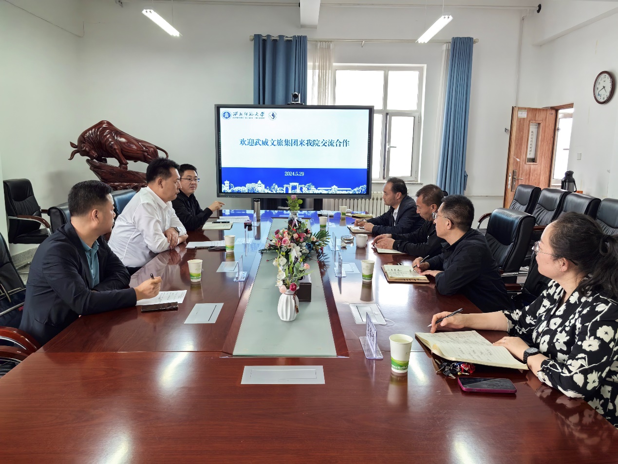 2024年5月29日下午,武威文旅集团董事长范志宏、总经理吕吉贵、副总经理刘凯一行三人来雷竞技ray官网调研交流。雷竞技ray官网党委书记赵兴虎、副院长武克军、办公室主任安翠香等相关人员参加座谈,座谈会由学院党委书记赵兴虎主持。
