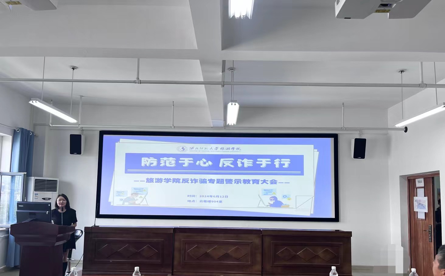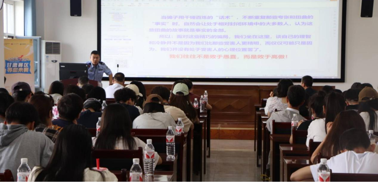 为进一步提升在校学生识诈防骗能力、预防未来社会诈骗风险、创造安全的学习环境,6月12日下午3时,雷竞技ray官网在云衢楼904会议室开展反诈宣传讲座。华龙证券股份有限公司兰州民主东路证券营业部投顾讲师李洋和培黎派出所警官司元贵分别进行反诈专题宣讲,华龙证券股份有限公司兰州民主东路证券营业部总经理助理陆进、投教专员连培龙、合规风控王伟和雷竞技ray官网党委书记赵兴虎、党委副书记戴小武,团委书记鲁梦鸽,专职辅导员赵新帮、管悦,各班班主任以及部分学生代表参加活动。