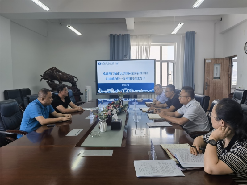 2024年7月6日,澳门城市大学国际旅游管理学院彭康麟教授、姚海涛博士一行来雷竞技官网进行访问交流活动,雷竞技ray官网院长梁旺兵、副院长柴亚林、副院长武克军、旅游管理系主任彭睿娟参加座谈会。