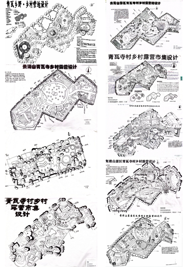 “学习之路并非一帆风顺”,《旅游景观设计》是一门综合性的课程,是在通过合理的规划与设计,将自然和人文景观进行有机融合,创造出具有吸引力和特色的旅游场景。线条是手绘表达空间构成与造型构成的基本元素,任课教师引导学生们通过练习手绘线条、曲线、圆等基本形态提升手绘水平,临摹优秀景观设计作品提高熟练度,强化学习景观设计制图的布局、排版和结构组成要素表达手法,为后续一系列工作做好铺垫。开设《旅游景观设计》这门课程,不仅是对旅游管理专业学生们的一个挑战,更是对学生们思维创新的锻炼。在进行“青瓦寺乡村露营地”策划过程中,任课教师与学生约定课余时间一一讲解作业问题,解决学生们面对的困难,让“乡村露营地设计”有计划的进行。