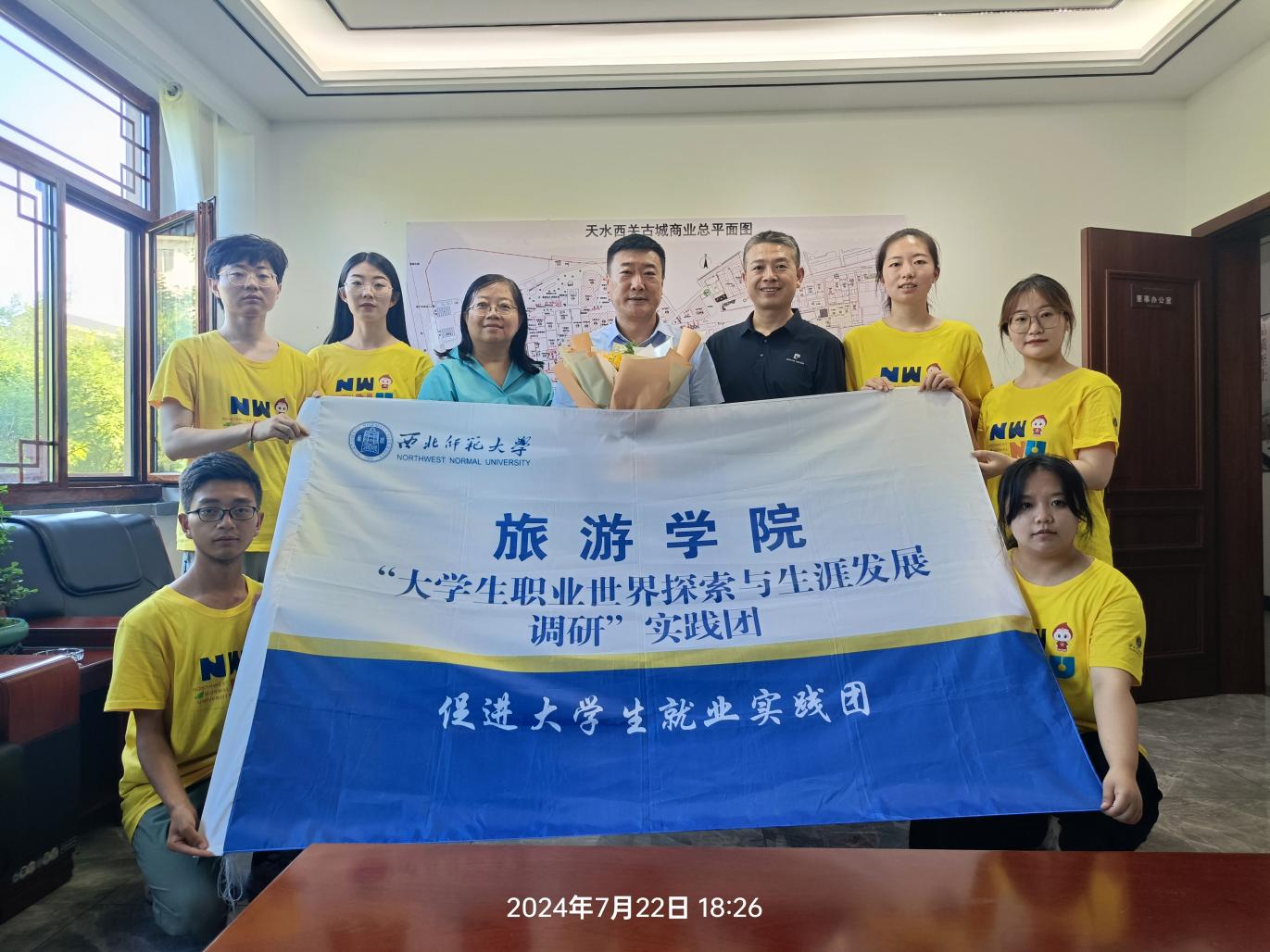 7 月 19 日下午,雷竞技ray官网党委副书记、纪委书记戴小武,西北文化旅游人才发展研究中心主任种媛副教授,带领“大学生职业世界探索与生涯发展调研”促进大学生就业暑期社会实践团,前往甘肃旅游(控股)公司/公航旅天水名城公司开展“访企拓岗”促就业和毕业生回访活动。