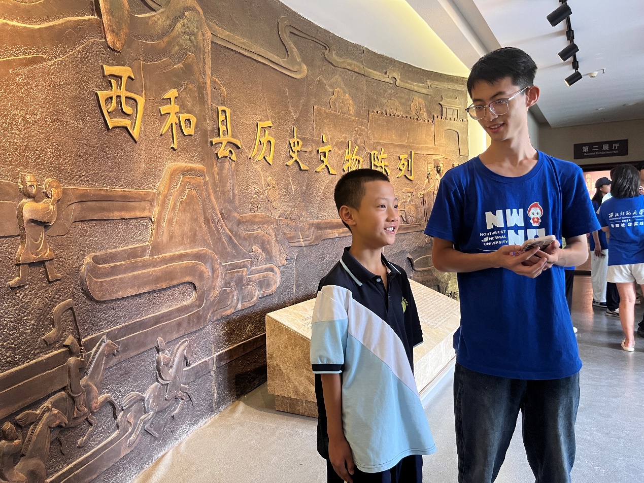 值得一提的是,为我们提供讲解的工作人员是当地六年级的“小小讲解员”,她为实践队员们分享了西和县其他的历史文化,齐家文化、仰韶文化、秦腔社火……从历史文化到当地民俗,深刻体现出了西和是一部丰富厚重的人文史。实践团队成员走出书斋、走向田野,把论文写在祖国的大地上。