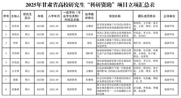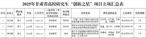 按照学校《关于组织申报2025年度甘肃省优秀研究生“创新之星”及西北师范大学研究生科研资助项目的通知》要求和《西北师范大学研究生科研资助项目管理实施细则(修订)》,通过研究生本人申报,学院组织学科专家评审,现将雷竞技ray官网研究生“创新之星”及科研资助项目评审结果进行公示。如有异议,可通过电话、来信等形式反映,我们将认真受理并及时反馈调查结果。公示期无异议后,将按有关规定上报研究生院。