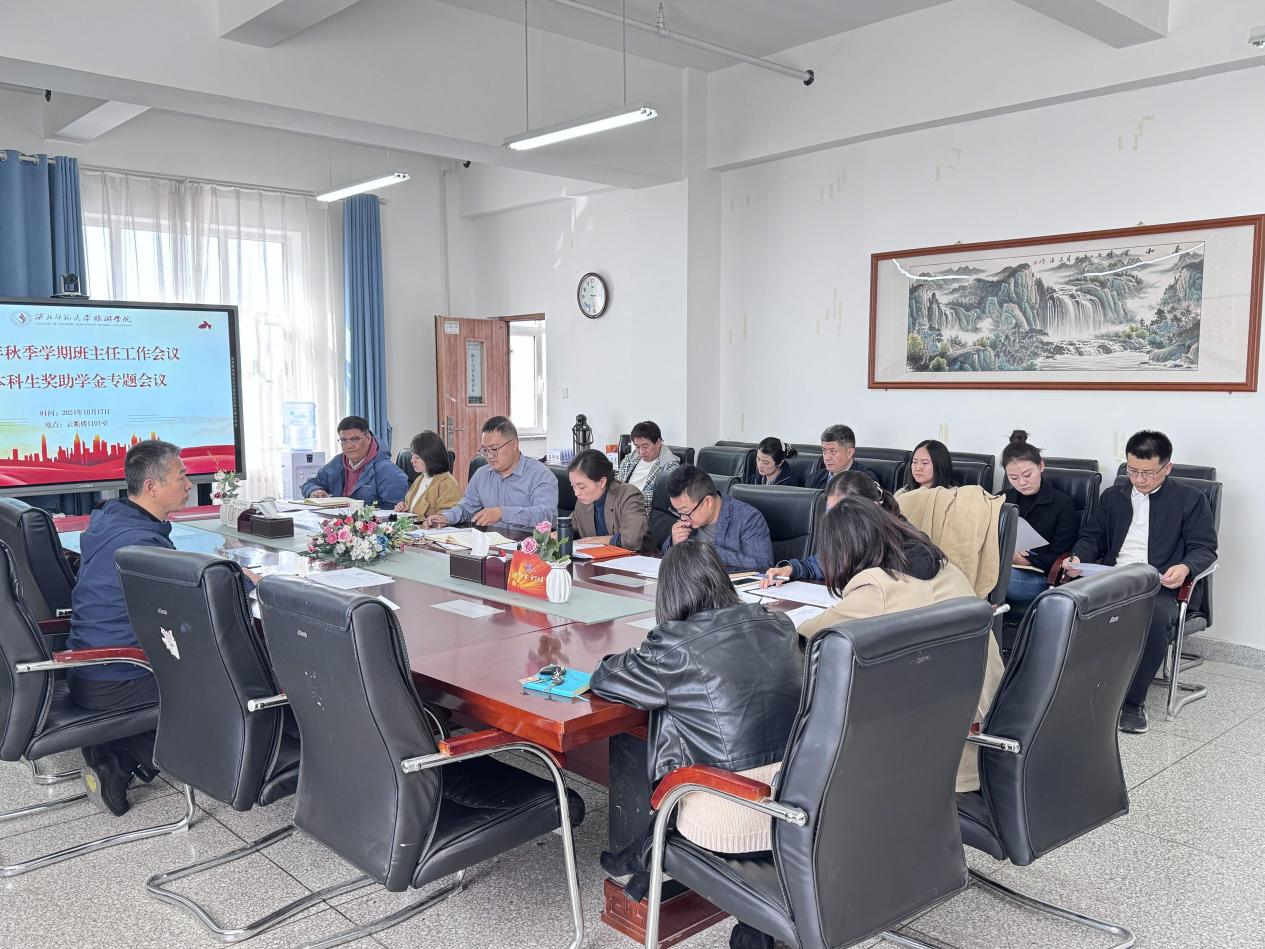 2024年10月17日,雷竞技ray官网在云衢楼1101室召开2024年秋季学期班主任会议暨本科生奖助学金专题会议。全体本科生班主任和辅导员参会,学院党委副书记戴小武主持会议。