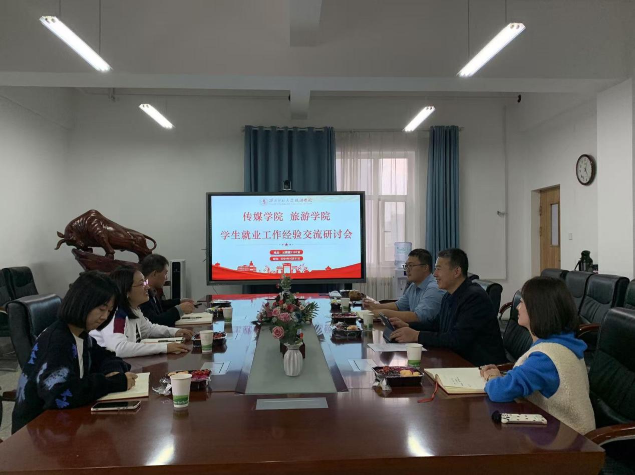 10月31日下午,传媒学院党委副书记席晓勇,专职辅导员赵向东、周艾一行来雷竞技官网交流学生就业工作,学院党委副书记戴小武,专职辅导员鲁梦鸽、赵新帮参加了本次交流活动。