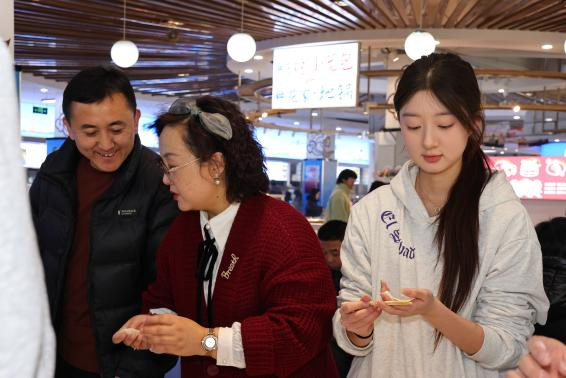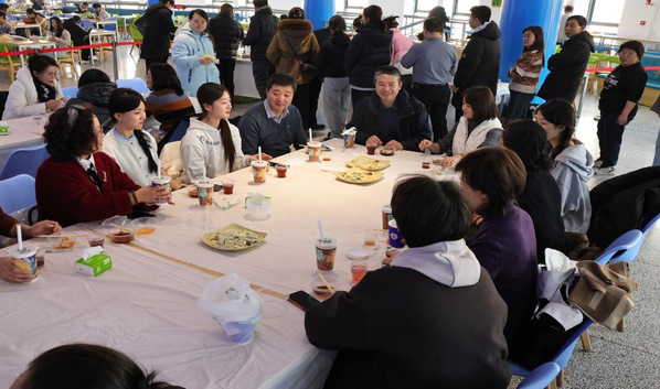 中午,家长与学生共同前往知行校区知行餐厅进行亲情互动午餐会。活动中,家长与学生们使用食堂准备的饺子馅料和饺子皮,一起包饺子、品饺子。本次活动的面粉原料来源于产自云亭耕读园,由学生与教师共同种植收割的小麦,使家长与学生获得了共同的师大记忆。随后,家长与师生共同参观西北师范大学校史馆、博物馆,感受西北师范大学122年教育办学精神的内涵和力量。