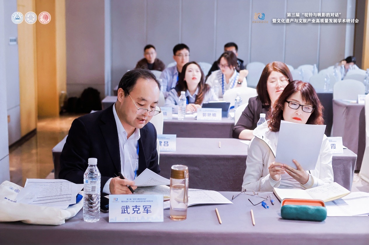 在分论坛学术交流中,西北师范大学参会师生聚焦"丝路文旅融合创新研究"方向,围绕长城文化谱系建构、民族非遗活态传承、数字文旅安全等前沿领域,汇报了《丝路文化遗产旅游区生态承载力评价》《数智嵌入赋能旅游发展》等10余项创新成果。武克军作为点评专家,从方法论创新、实践应用维度对汇报成果进行专业指导,此次对话展现了我校在丝路文旅研究领域的人才培养成效,为构建跨学科研究范式提供了新思路。