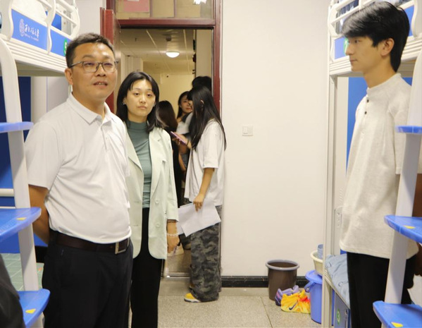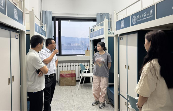 走访过程中,老师们细致查看宿舍设施配置与使用情况。与新生交流时,耐心询问大家对校园新环境的适应情况,并及时给予关怀。