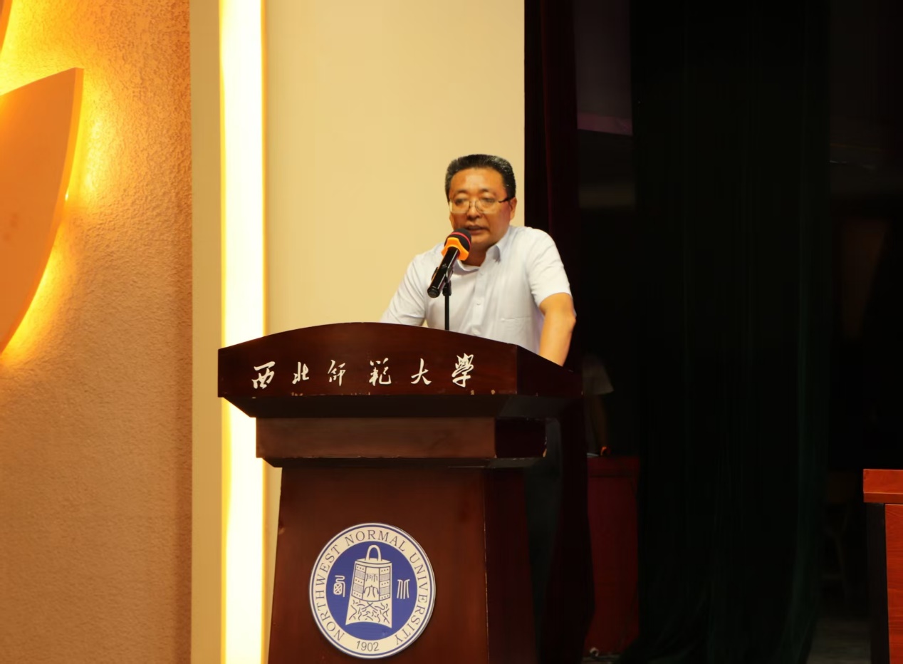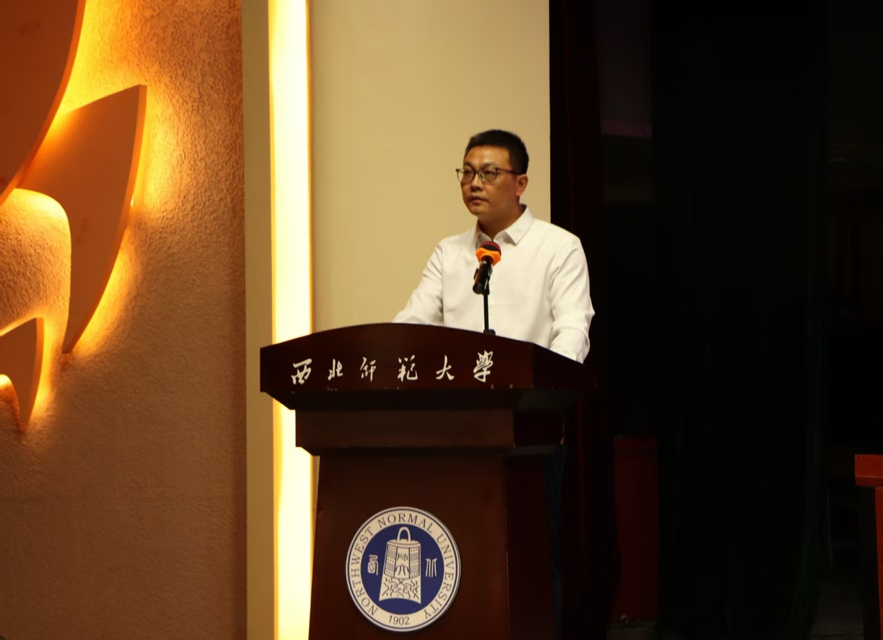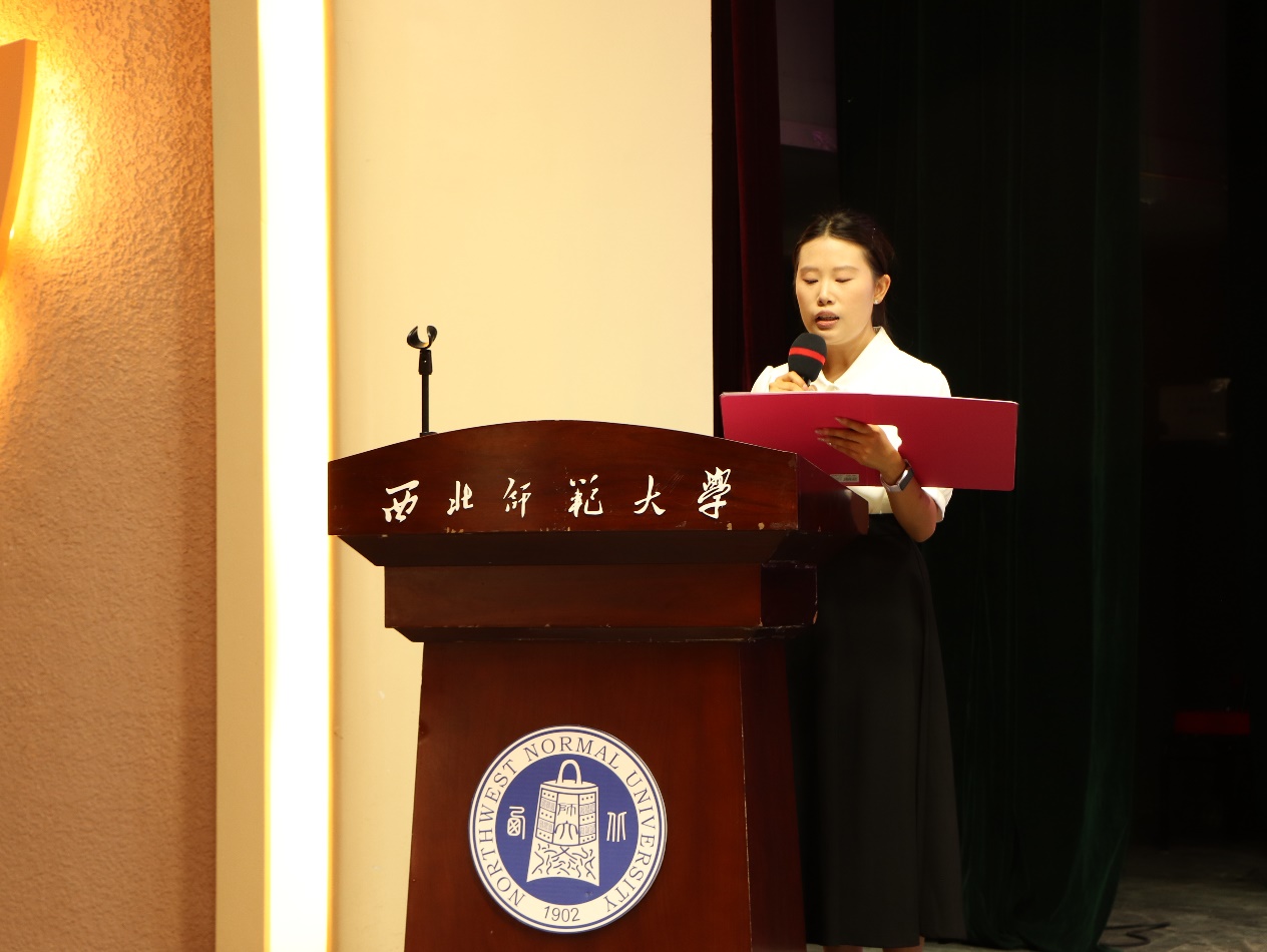 新生代表2025级航空服务艺术与管理专业陈坤表达了对成为“师大人”的自豪和憧憬。他分享了对专业融合服务、艺术与管理的理解,表示将在“知术欲圆,行旨须直”的校训与“行万里路,读万卷书”的院训指引下,以“学为本、行践知、心养德”为方向,夯实理论基础,投身实践锻炼,涵养服务精神。
