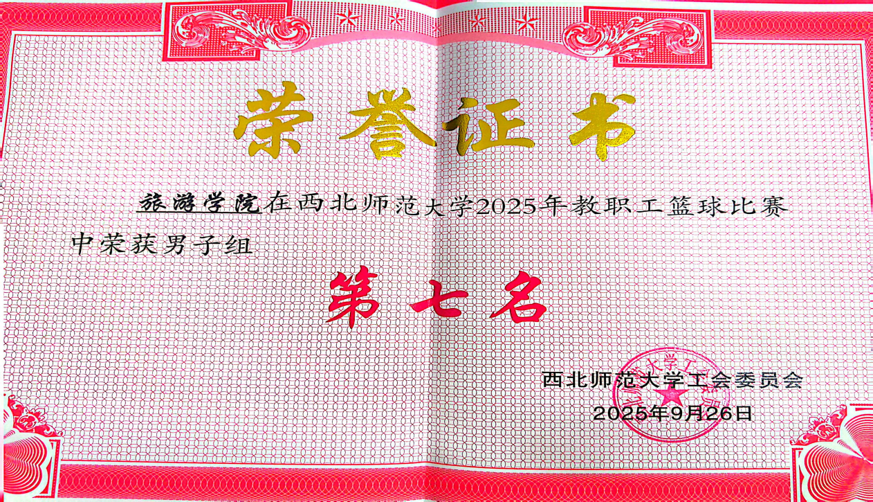 近日,由校工会主办的西北师范大学2025年教职工篮球赛在学校篮球场圆满落幕。雷竞技ray官网教职工篮球队凭借默契的团队协作与顽强的拼搏精神,历经多轮激烈角逐,荣膺赛事三等奖,充分展现了学院教职工积极向上的精神风貌。