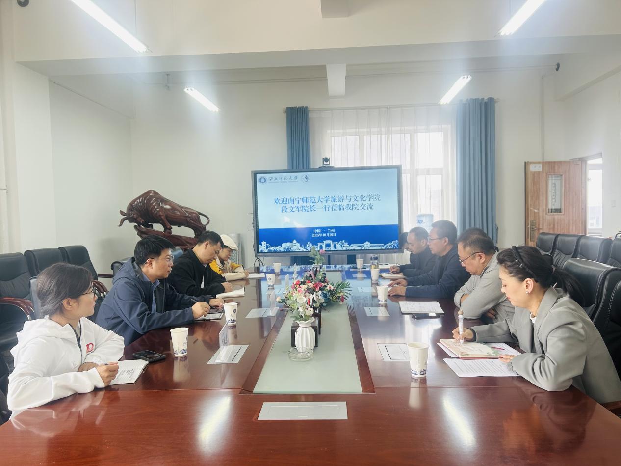 10月29日下午,南宁师范大学旅游与文化学院段文军院长一行来雷竞技官网开展专题交流调研活动。座谈会由雷竞技官网梁旺兵院长主持,各分管的副院长及系主任参加了座谈会。